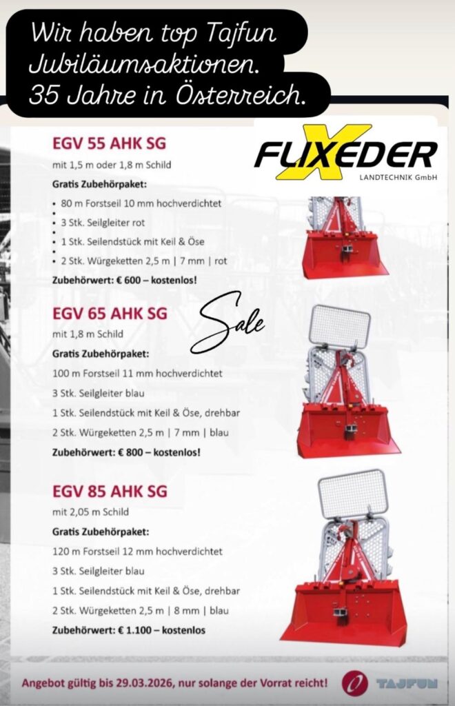 35 Jahre Tajfun Seilwinden in Österreich werden gefeiert. Bis 29.3.26 gibt es 3 top Aktionen – es heißt also schnell sein.